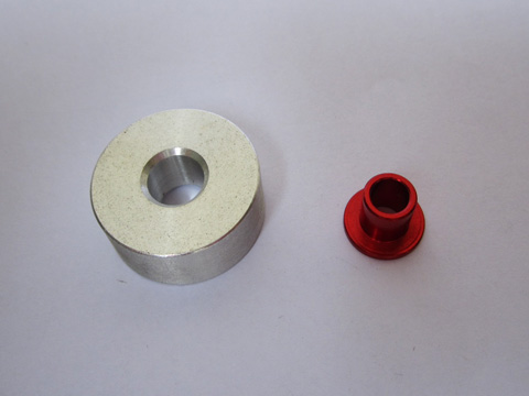 CNC bushing, machined from billet aluminum, with colorful anodized.